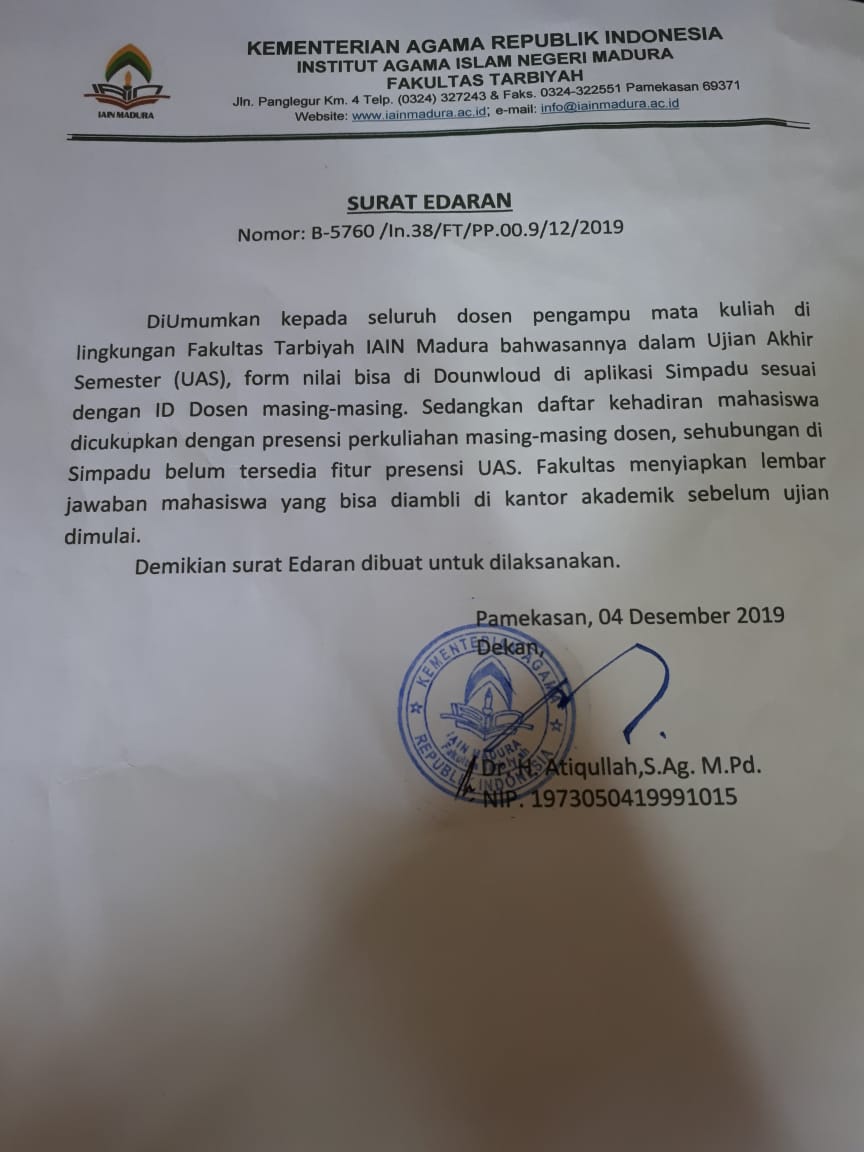 Surat Edaran tentang Form Nilai UAS Ganjil 2019